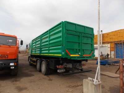 Самосвальная платформа разгрузка на две боковые стороны 50град, ручное запирание бортов, верхний ряд бортов с верхней навеской, нижний ряд бортов с нижней навеской,. Гидросистема: три опоры, с двумя гидроцилиндрами. Цвет платформы на выбор.